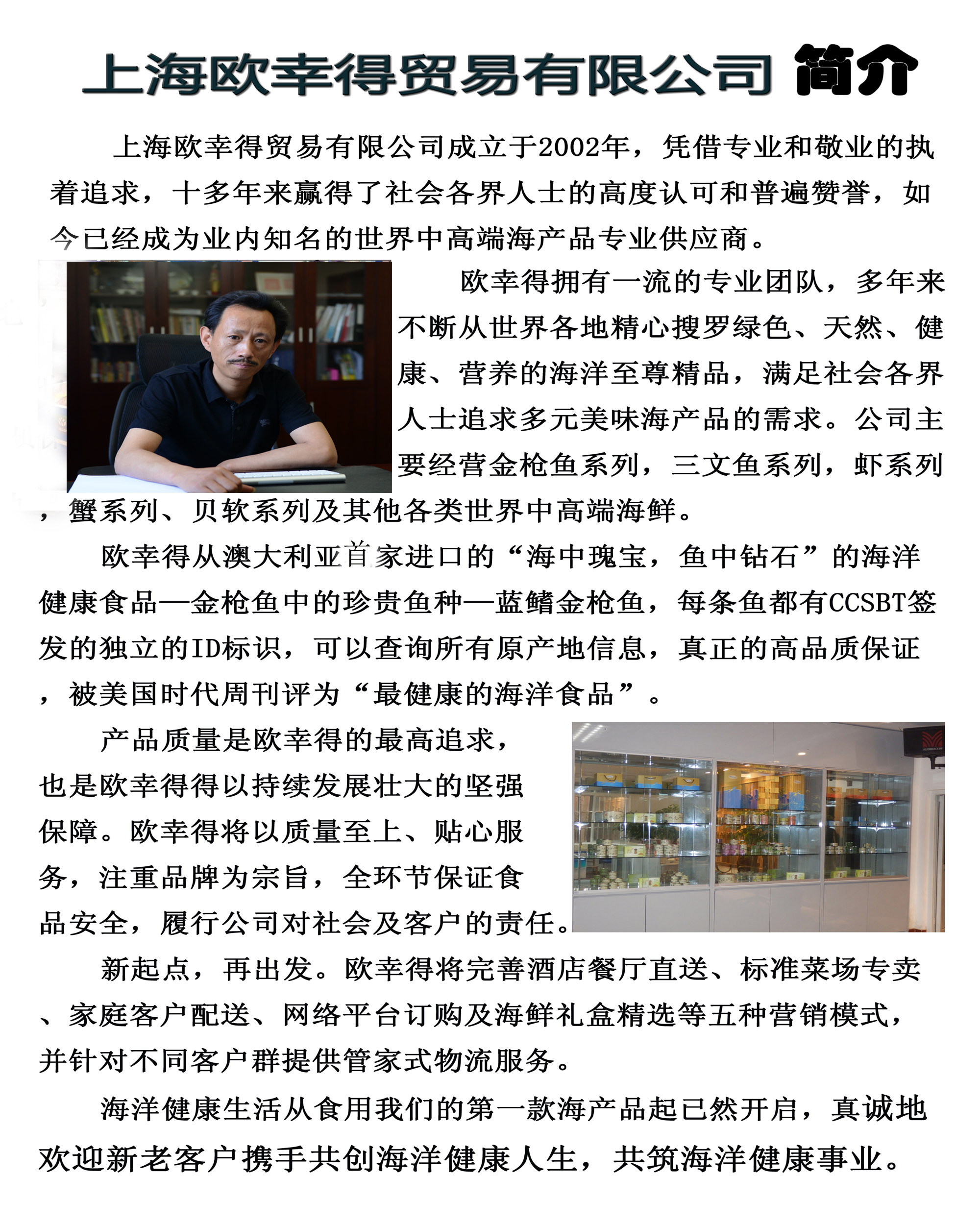 China Ocean Food has always been taking food safety as its top priority. To sell safe and high quality seafood, COF first exclusive import tuna from Australia. Each tuna has a unique “CCSBT” label which can track all original information.
