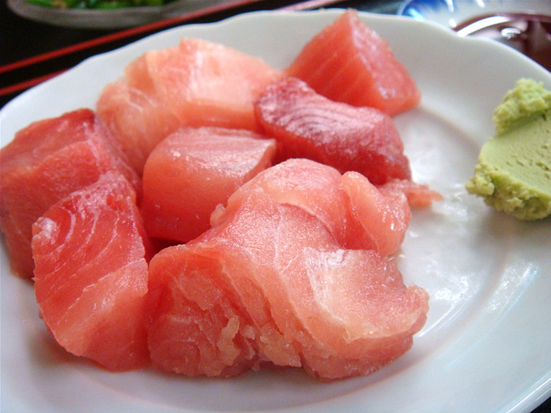 金槍魚共計約30余品種,經濟價值較高的有藍鰭金槍魚、馬蘇金槍魚、大眼(也叫大目)金槍魚、黃鰭金槍魚、長鰭金槍魚、鰹魚六個種類。前四種主要制作生魚片,后兩種主要制作金槍魚罐頭。金槍魚的肉質非常特別,生食味美,口感極佳。