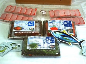 藍鰭金槍魚赤身180G/盒/1盒,冰鮮三文魚200G/盒/1盒,牡丹蝦3只/盒/1盒,贈海草250G。